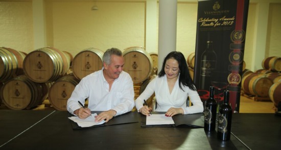 阳光璀璨酒庄投资者代表杨鑫与总统酿酒师Marcel签约图